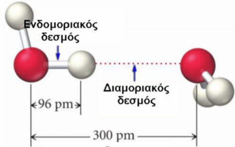 Για να διασπαστεί ένας ενδομοριακός δεσμός Ο-Η του Η₂Ο θα πρέπει να το θερμάνουμε σε θερμοκρασία αρκετών χιλιάδων ℃, ενώ για να διασπαστεί ένας διαμοριακός δεσμός Ο-Η αρκεί θέρμανση στους 100℃.